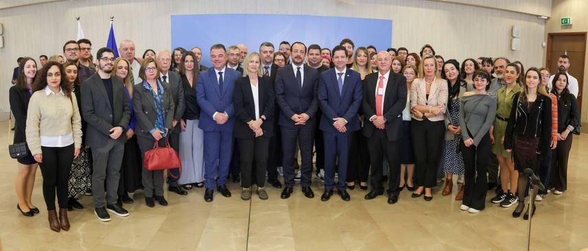 Heading the delegation for the remainder of the visit was Professor Achilleas Chaldaeakes, Member of the NKUA’s Administration Council and Chairman of the ‘Committee for the Cultivation and Promotion of Relations Between the National and Kapodistrian University of Athens and Cyprus’, as did his fellow members of the Committee, Professor Athanasia Smirniotou, Member of the NKUA’s Administration Council, Professor Grammatiki Karla, Director of the Laboratory of Cypriot Studies at the NKUA’s Department of Philology (School of Philosophy), Professor Emeritus Andreas Voskos, and Professor Nikolaos Maliaras from the NKUA’s Department of Music Studies. The delegation also included Professor Nikolaos Eriotis, Dean of the School of Economics and Political Sciences, Professor Pavlos Myrianthefs, Chair of the Department of Nursing, NKUA faculty members—Kirki Kefalea, Tzina Kalogirou, Athena Kalokairinou-Anagnostopoulou, Evmorfia Koukia, Polyxeni Mangoulia, Thomas Mavromoustakos, Giorgos Vavouranakis, Pantelis Stergiannis, Petros Galanis—as well as undergraduate and postgraduate students enrolled in programmes related to Ancient Cypriot Literature and Cypriot Archaeology.